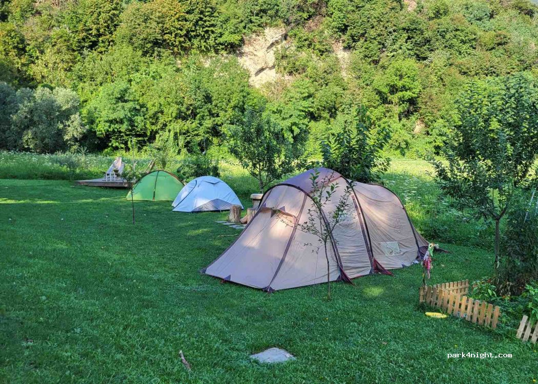 Wir hatten zwei schöne Nächte. Die Besitzer sind super lieb und sprechen gutes Englisch. Beide morgende haben wir gefrühstückt und die veganen Croissants und Cafés sind sehr lecker. Die Toilette und die Dusche sind modern und sauber! (bis auf Spinnweben) Es gibt kein besseres Angebot, wir haben für ein Zelt (2 Personen) 10€ gezahlt. Nur der nah gelegene Parkplatz und Ort sind Abends etwas lauter.