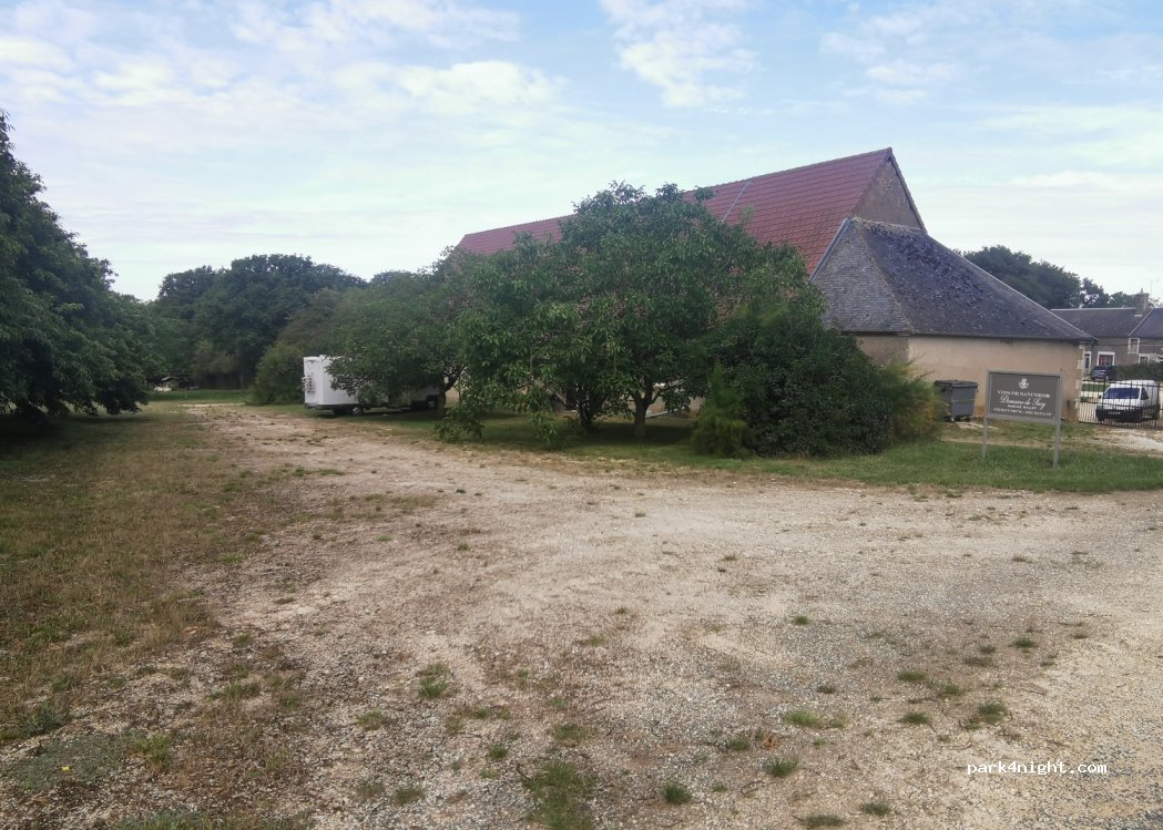 Parking légèrement en pente sous les châtaigniers et les noyers à côté d'un pré (vaches). Appeler avant de venir, nombre de places limitées (2) et une seule nuit possible.