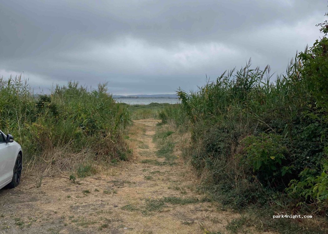 Geräumiger Parkplatz am Ortseingang von Bages mit Privatsphäre und neben einem Pikenike-Bereich. Ich habe hier ein paar Nächte mit meinem Hund verbracht und es ist sehr ruhig.