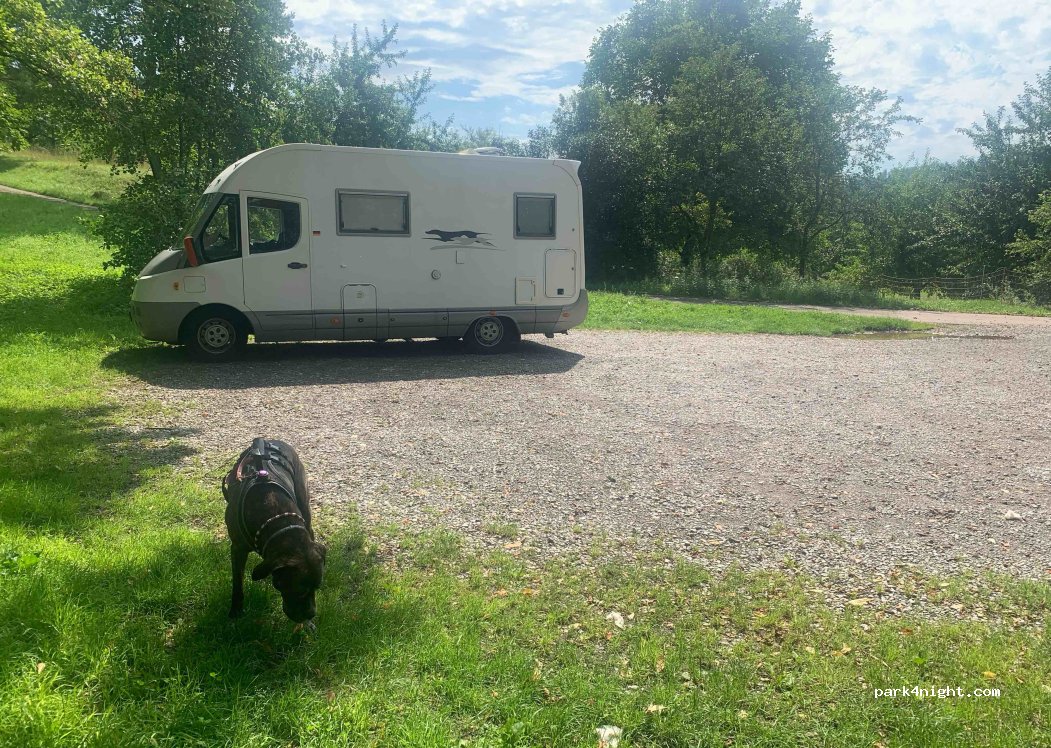 Petit stationnement de sentier avec table de pique-nique. Probablement rien pour les mobil-homes plus grands, également à cause des branches pendantes, mais avec mes 2,8 de hauteur et 6 m de longueur, c'est facilement réalisable. S'il vous plaît, gardez-le propre et n'en faites pas trop avec des auvents, des grilles, etc., il existe des campings pour cela. entendre quelque chose dans la rue.