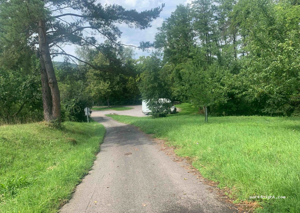 Small trail parking lot with picnic table. Probably nothing for larger mobile homes, also because of the hanging branches, but with my 2.8 height and 6m length easily feasible. Please keep it clean and don't overdo it with awnings, grills, etc., there are campsites for that. to hear something on the street.