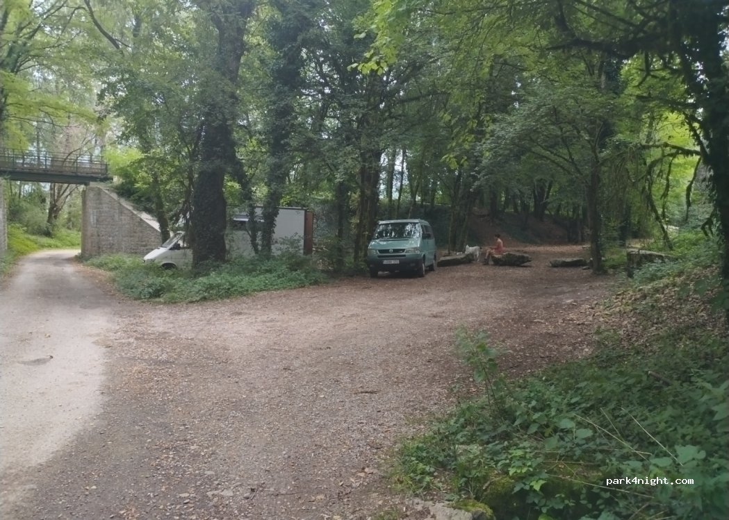 Petit parking en zone d'escalade. Terrain presque plat, très calme et paisible. Il n'y a pas d'eau. Pour faire vos besoins il y a beaucoup d'espace, une pelle et un trou dans le sol. Ne laissez pas traîner de papier s'il vous plaît, respectez l'environnement