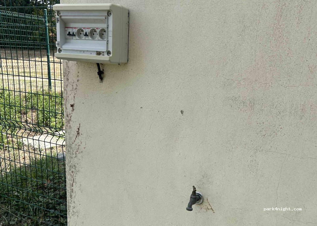 Pas une aire de camping-car mais un parking à 200 mètres d'un lac, des wc pas entretenus et dégradés mais bon je pense que la commune n'est pas responsable. Nous y avons passé une nuit super, sur le côté gauche du bâtiment, il y a bien des prises de courant qui fonctionnent et un robinet. Merci à la commune pour ce lieu sympathique.