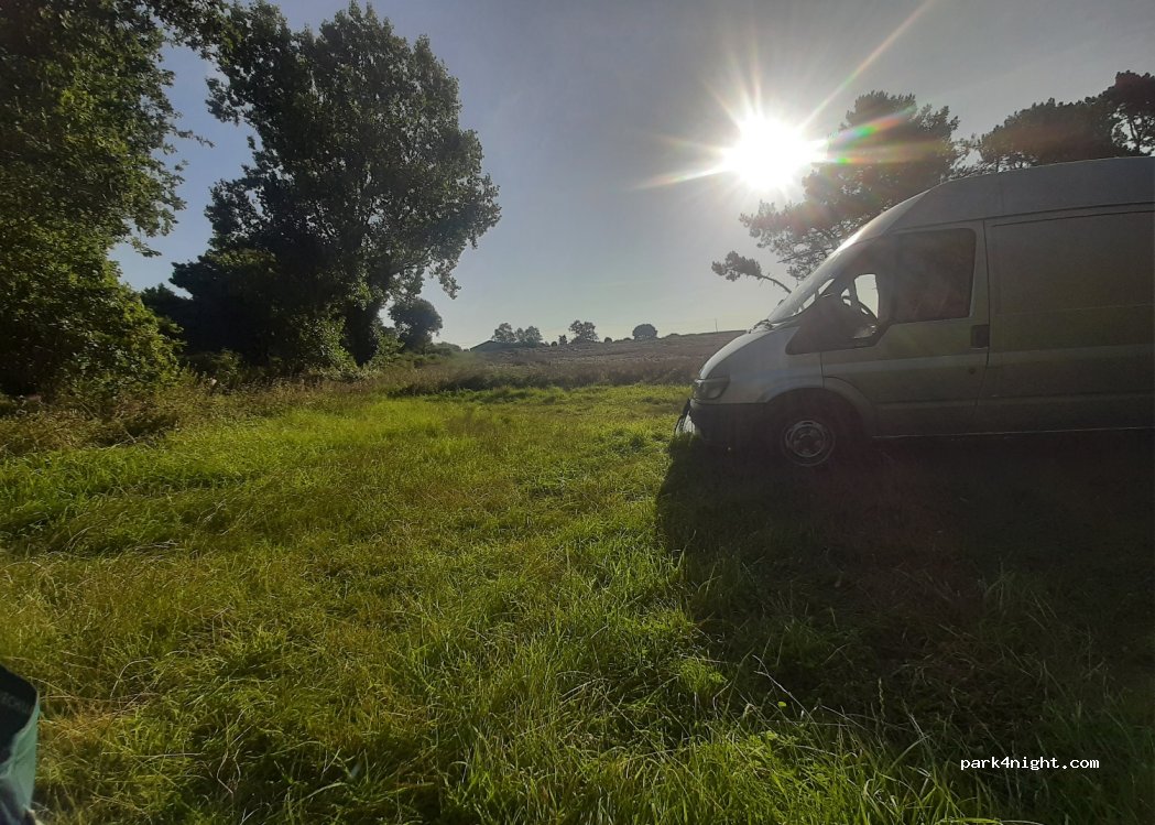 Spot retiré et très tranquille, tout près de l’étang. L’accès se fait par un chemin bordé de végétation un peu étroit. Ça passe tout juste en van. Ça frotte aux tiges en camping car. Nous y étions un après-midi, un seul camping car stationné. Pas mal de place.