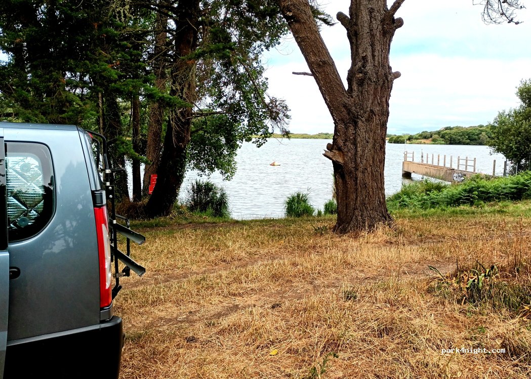 Au bord de l’étang de Lannenec, un espace bien plat, au calme, accessible en van avec possibilité de faire demi tour facilement.