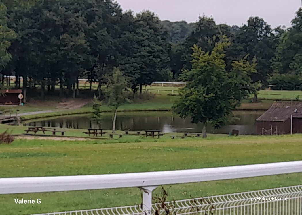 Lovely new aire with views of the lake and racecourse. Chateau close by with beautiful grounds to walk through. Pitches level. 2 mins walk into the centre. Lovely and quiet at night listening to the owls in the nearby trees.