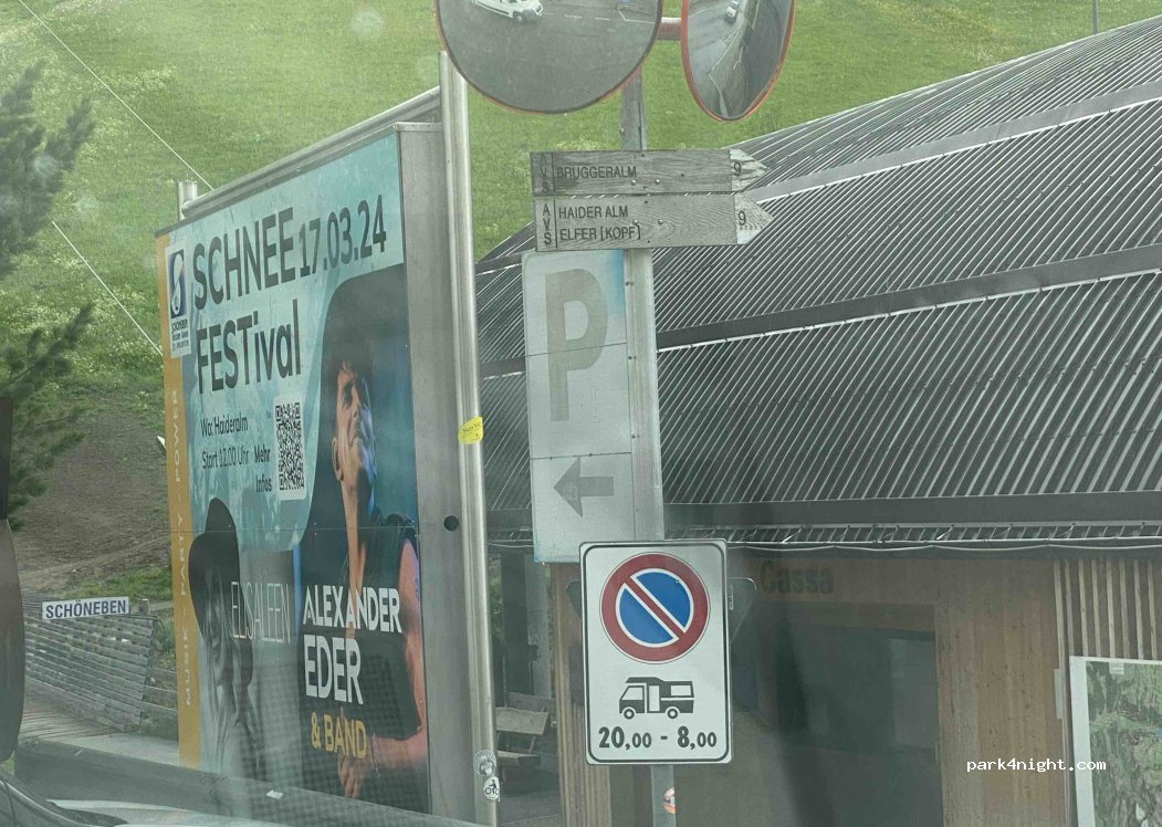 Es ist dort keine 24 Stunden parken umsonst. Es ist in der Nähe von einem Campingplatz und bezahl Plätzen, diese kleine Ecke befindet sich zwischen einem Tagesparkplatz und dem Lift. Ich bin sicher, hier wurde nur das 8 bis 20:00 Uhr Schild entfernt oder vergessen. Ich habe trotzdem dort geparkt. Solange kein Schild zu sehen ist,ein wirklich guter Platz.