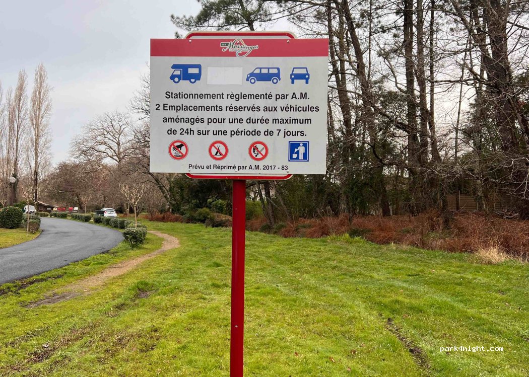 24h autorisées tous les 7 jours Parfait, calme avec de l'espace. Merci à la marie pour ces places réservées. Attention en saison à ne pas arriver trop tard