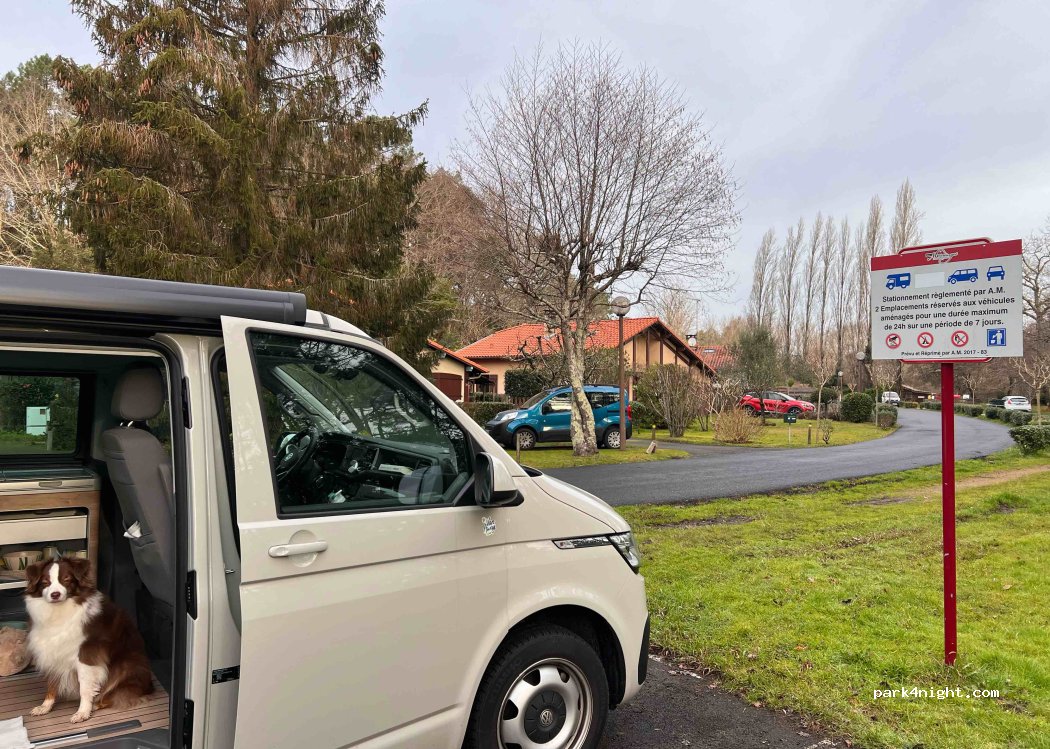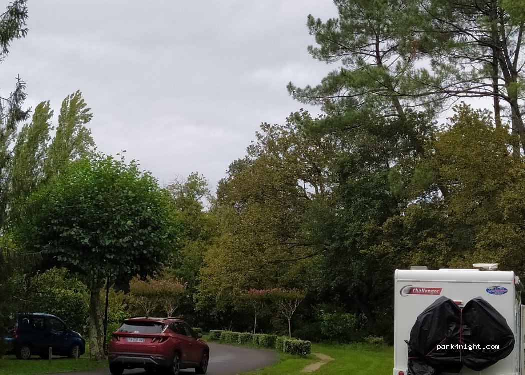 We saw this parking spot whilst out biking from the camping car park aire at the messanges beach, as our parking ended at 17.00 we came here for the night, very quiet, a couple of dogs walkers. We were the only van.Didn’t leave our Motorhome as had already explored the area on bike but appears to be very safe.