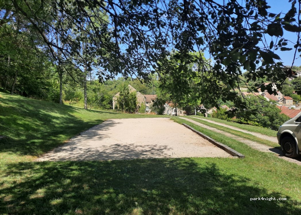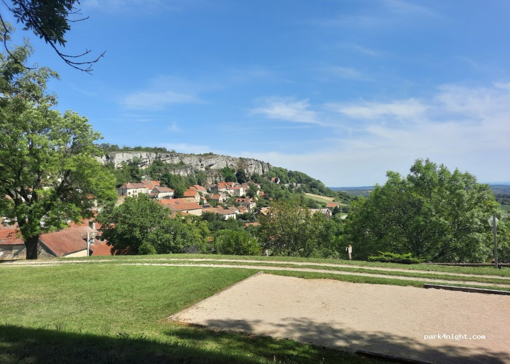 Très bel emplacement pour une nuit, au calme. Très belle vue sur Orches. Table de pique nique, terrain de pétanque et petit toboggan. On recommande !