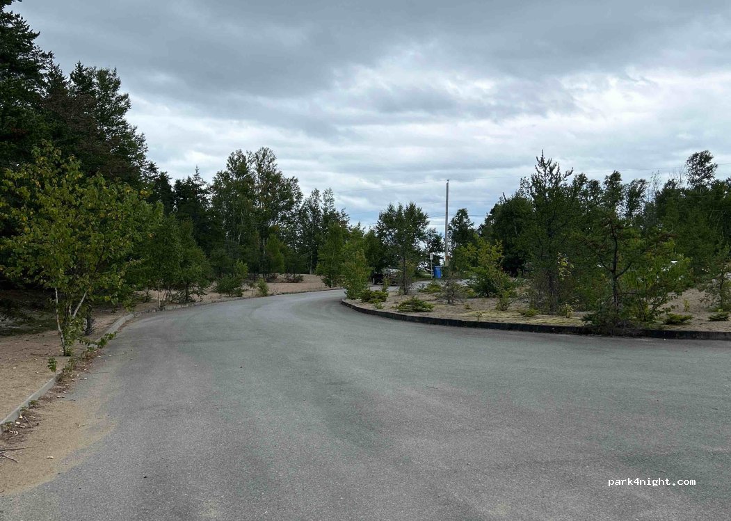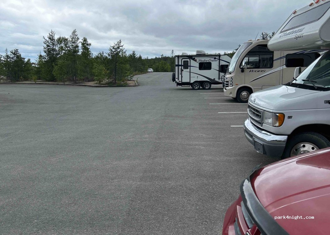 Kostenloses Parken für Wohnmobile am Tag, Start einer 40-minütigen Wanderung, Übernachtung verboten