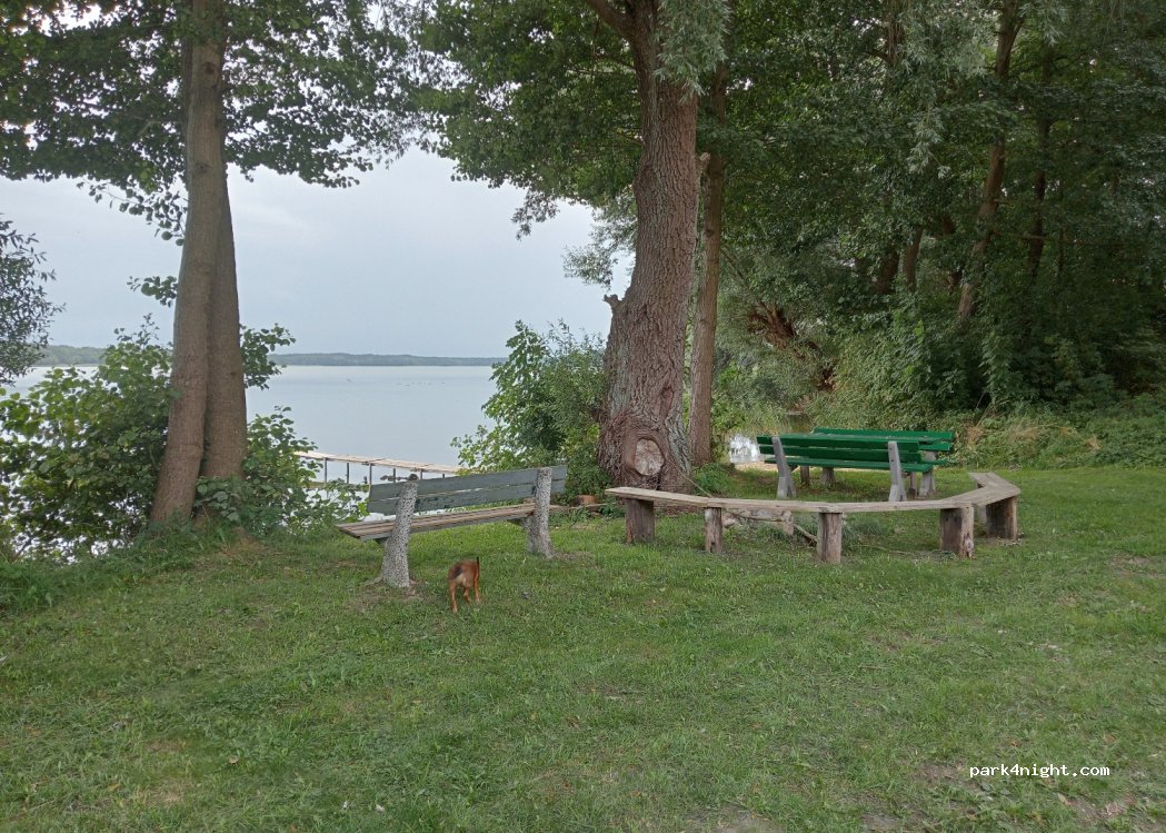 Wunderschöner Ort, versteckt im Grünen. Direkt am See. Die Nacht verbrachte ich mit dem VW T5 Wohnmobil. Sehr ruhig. Ein Nachbar kam, um uns zu begrüßen. Es handelt sich nicht um Privateigentum. Rund um das Feuer laden halbrunde Bänke zum Entspannen ein. Kleiner Tisch in der Nähe des Piers. Sehr idyllische Lage.