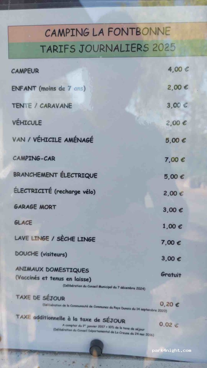 camping simple et calme avec des grands emplacements , sanitaires pas très modernes mais propres. prix payé 22€44, pour une voiture, tente, électricité et 2 adultes avec 1 ado