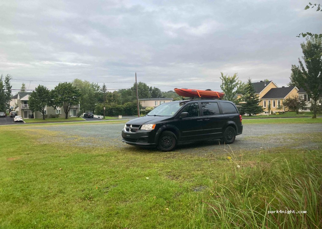 30 juin 2025 Très calme. Secteur résidentiel. 30 pieds. Très grand. Pas de partie de basaball. On arrive à 19h00. On quitte à 9h00 am Pas d'interdiction de stationner la nuit.