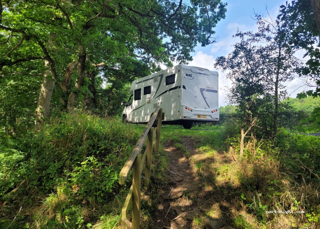 Parking for one motorhome at a wide layby at the side of the river on the B7060 road. Good for a lunch/day stop over. You could stay overnight if you don't mind the odd bit of traffic.