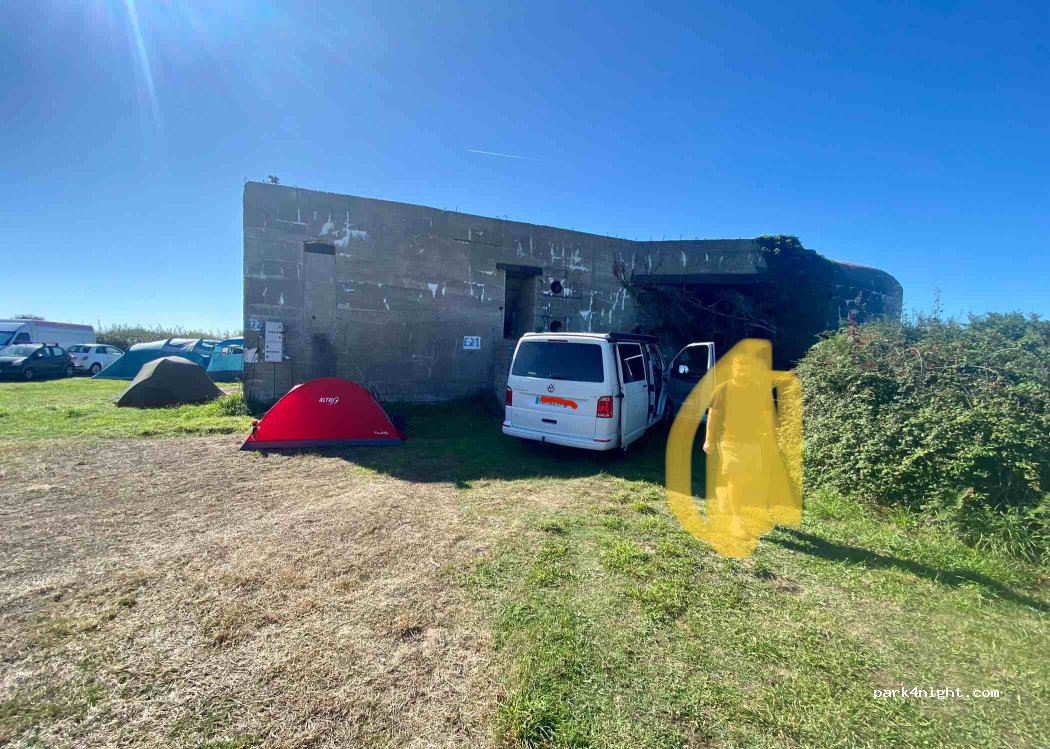 schöner Campingplatz, meist ruhig (bei uns war da ein festival). Viel Meerblick u strand. Die bunker fand ich jetzt nicht so toll. etwas mehr grün, Sträucher und Bäume wären schöm