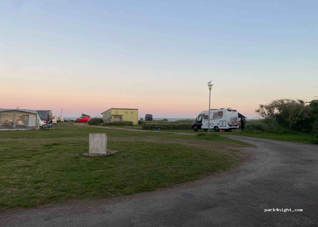aire camping car park et non plus camping face à la mer mais si vous voulez avoir électricité il faut se mettre à l entrée et donc plus la vue sur la mer. terrain relativement plat sur gazon