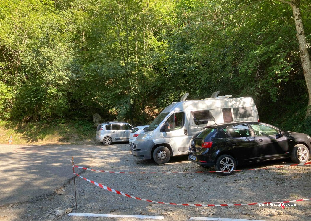 Buen sitio para dormir en el apartadero de una curva, en medio de la naturaleza, sitio para 4/5 furgos (estábamos 2 de 6m y había 3/4 coches/furgos más. El único inconveniente que está en pendiente
