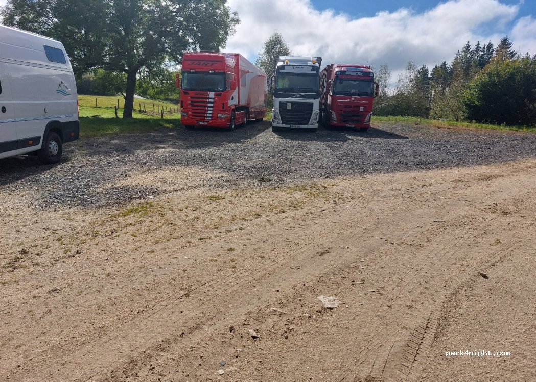 Proche du village, parking gravier tranquille mais 3 semi remorques sont posés ce samedi, il reste de la place pour deux CC
