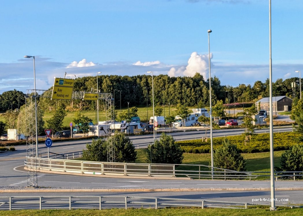 Great place to spend a night or two (48 hours parking). Close to Stavanger by bus or driving,hiking trail in the woods/by the sea nearby, a dog park about 10-15 minute walk on the trail, so very dog friendly parking. There ia a big trash can on the parking also! Please dont take up a lot of other parking spaces by setting up tables, grill etc.