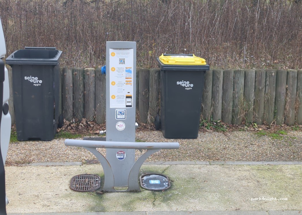 Aire service eau ,vidange eau grise, vidange cassette, parking au milieu des camion (Centre Routier), entrée autoroute A13.