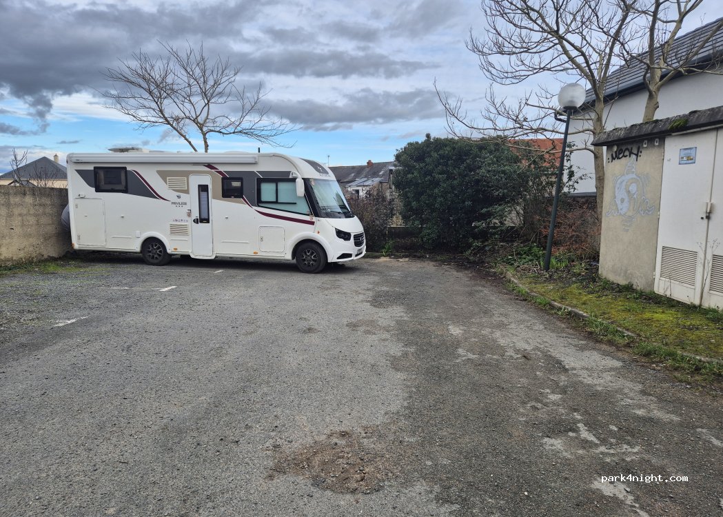 Parking derrière l'église très tranquille. Légèrement en pente