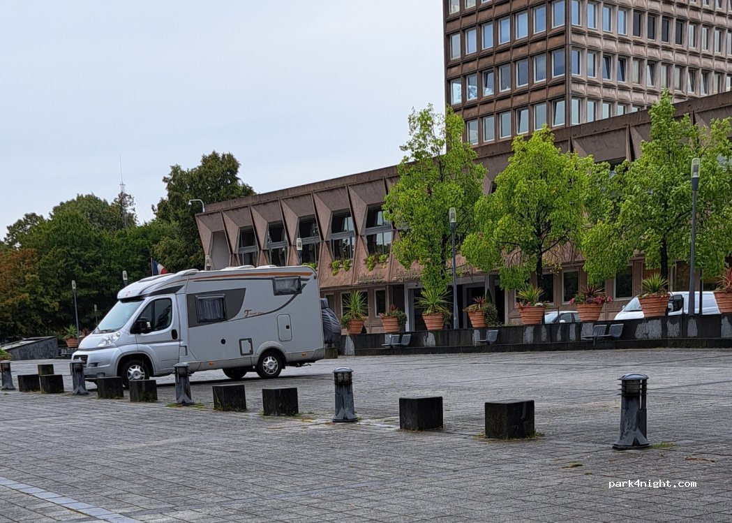 In this city where nothing is planned for CCs, we spent the day and night (with the blessing of the OT) in this large parking lot in front of the city hall and the zoo. No ban. Near OT, St Pierre St Paul church, Sthrau room and La Rothonde restaurant.
