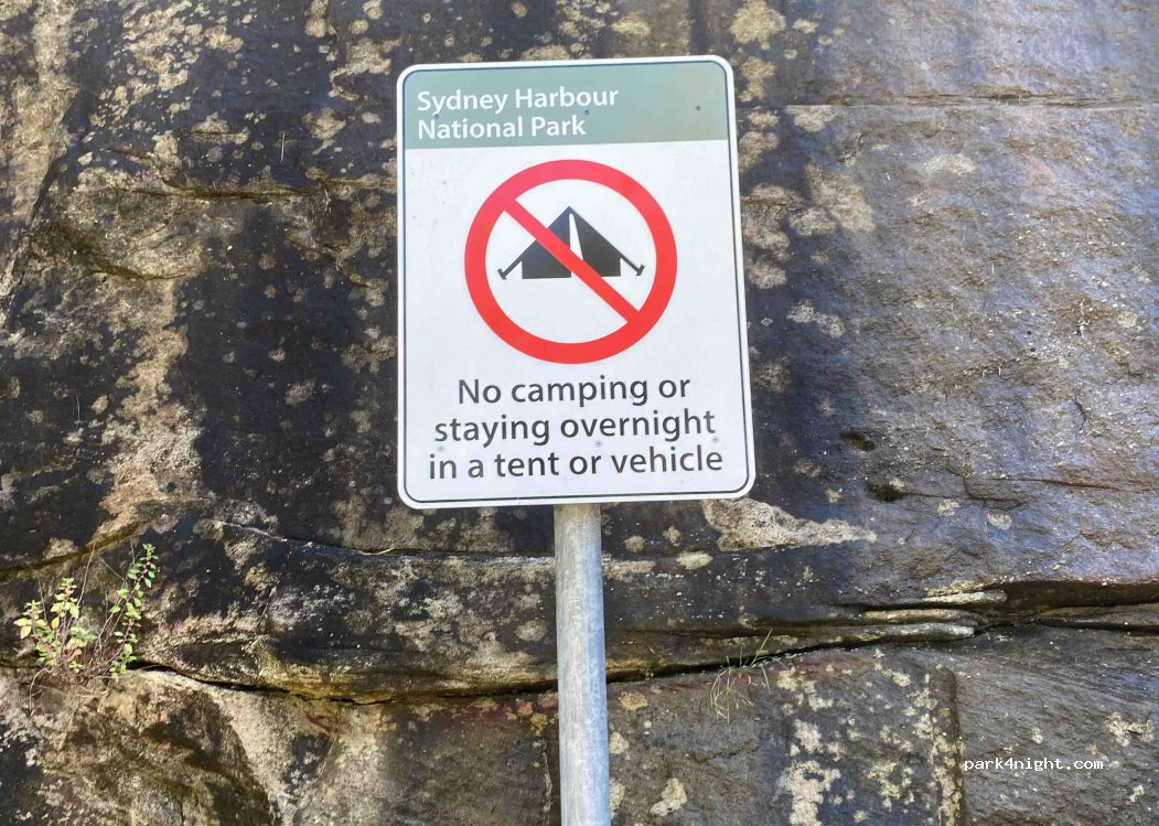 There is indeed a sign that says you cannot sleep overnight in a tent, camper van or motor vehicle.