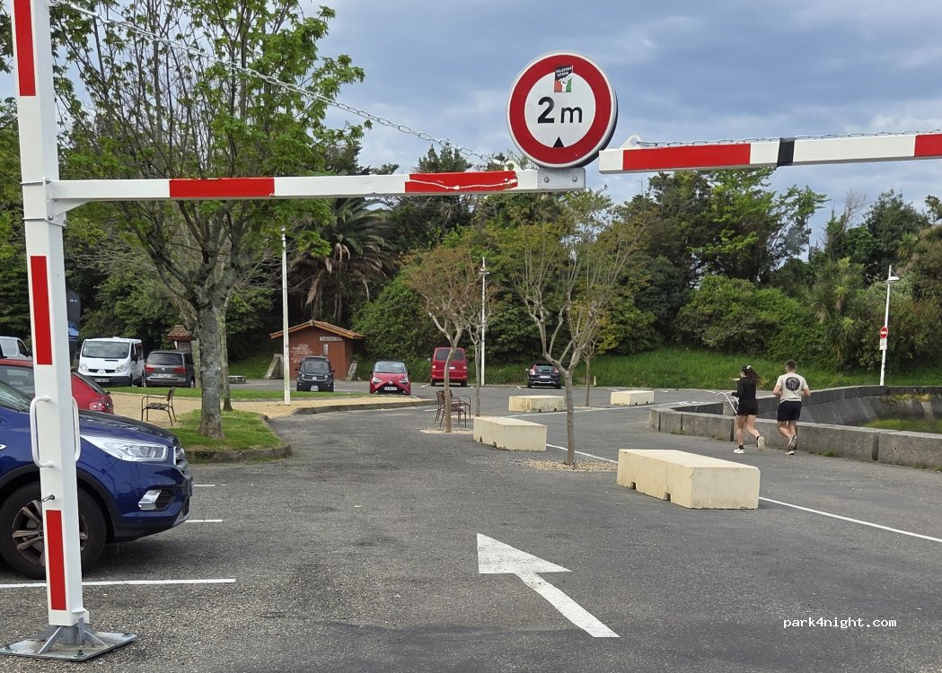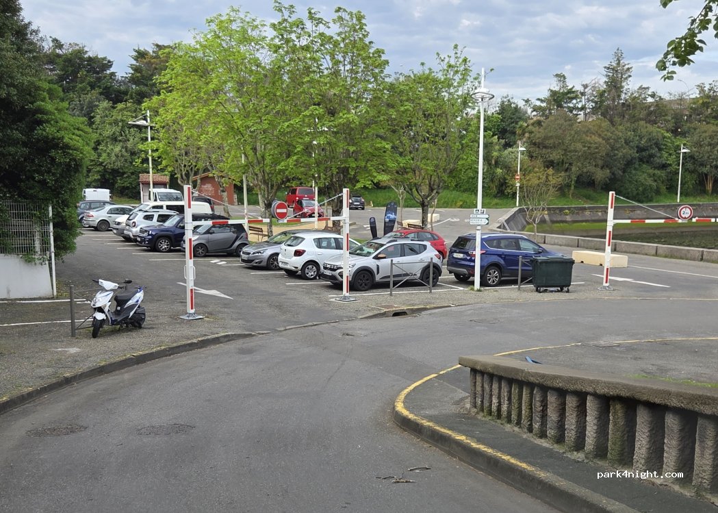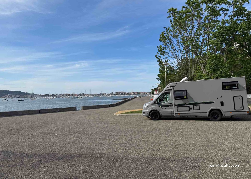 Petit parking mais très bien situé. Toilettes à disposition. Très belle vue sur le port. Plage d’hendaye à 10 bonnes minutes en vélo par piste cyclable tout le long. SDF qui vivent là à l’année mais très serviables et gentils si besoin.