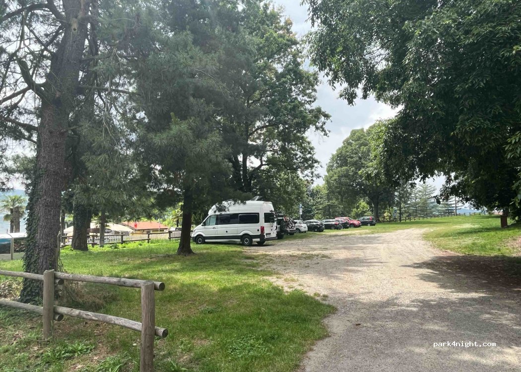 Day parking for motorhomes, mosquitoes, lake view, drinking water point, cycle path. Picnic area. A very safe place and lots of shade.