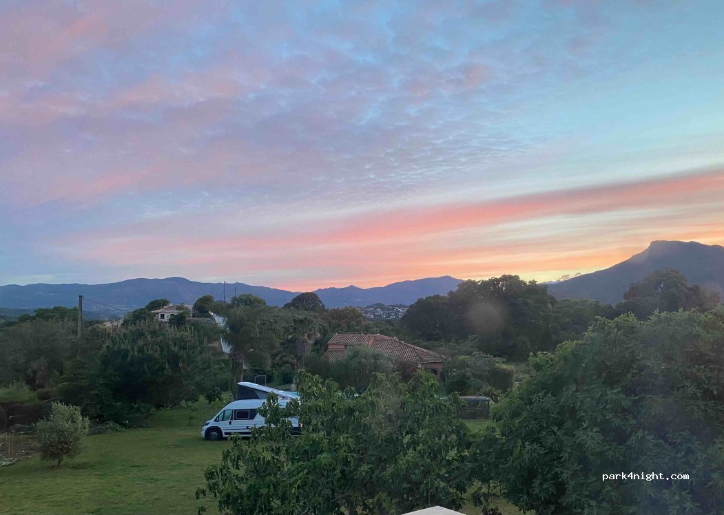 Nous y avons passé la nuit à 1 van et 1 fourgon. Pratique pour laisser le fourgon en sécurité et se rendre à Ajaccio avec le plus petit véhicule. Électricité et accès au tuyau d'eau. Nous avons fait une "douche" à l'eau fraîche auprès des poules;-) Attention pas de sanitaires pour les vans. Un peu chérot à notre goût. Accueil très sympa.