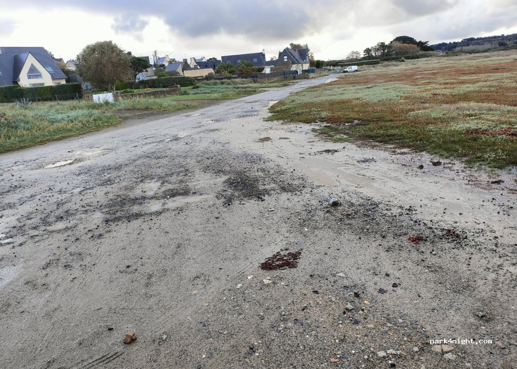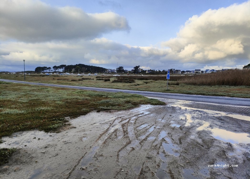 Parking sur cailloux au bord du marais. Impasse très tranquille le long du sentier du tour de l'île (7km).