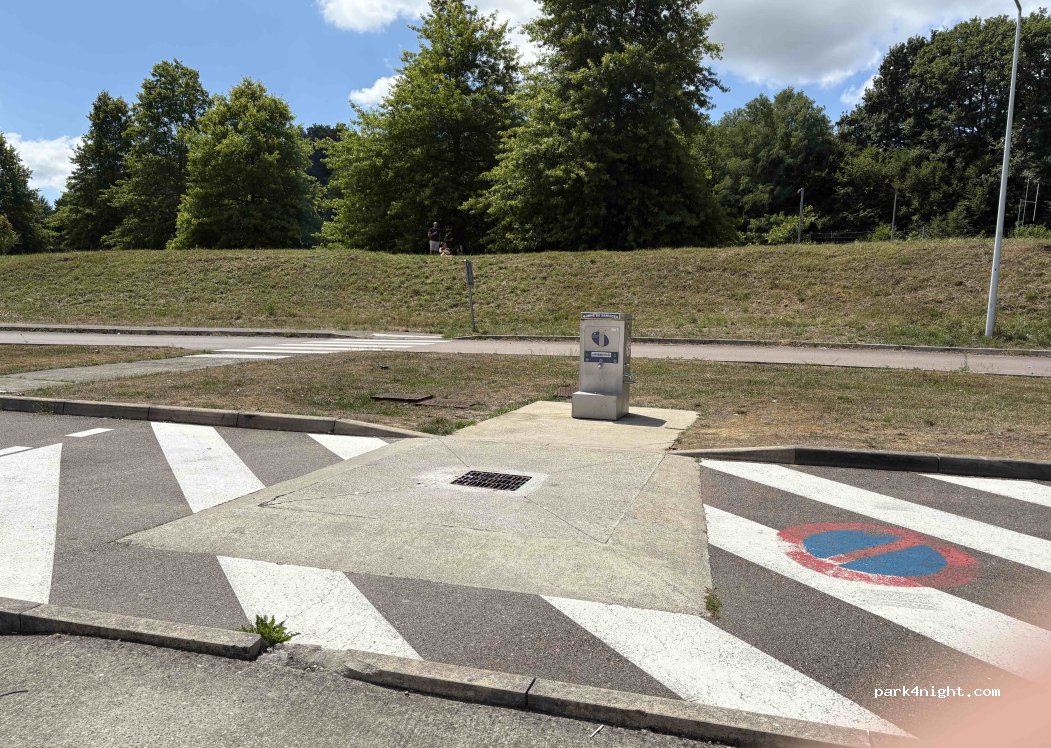 aire très spacieuse et tous pour passer un bon moment (station ,restaurant,aire de pique nique vidange eau grise et toilette...) l'eau propre pour la recharge est payante il faut prendre un jeton à la station essence à 2.5euro