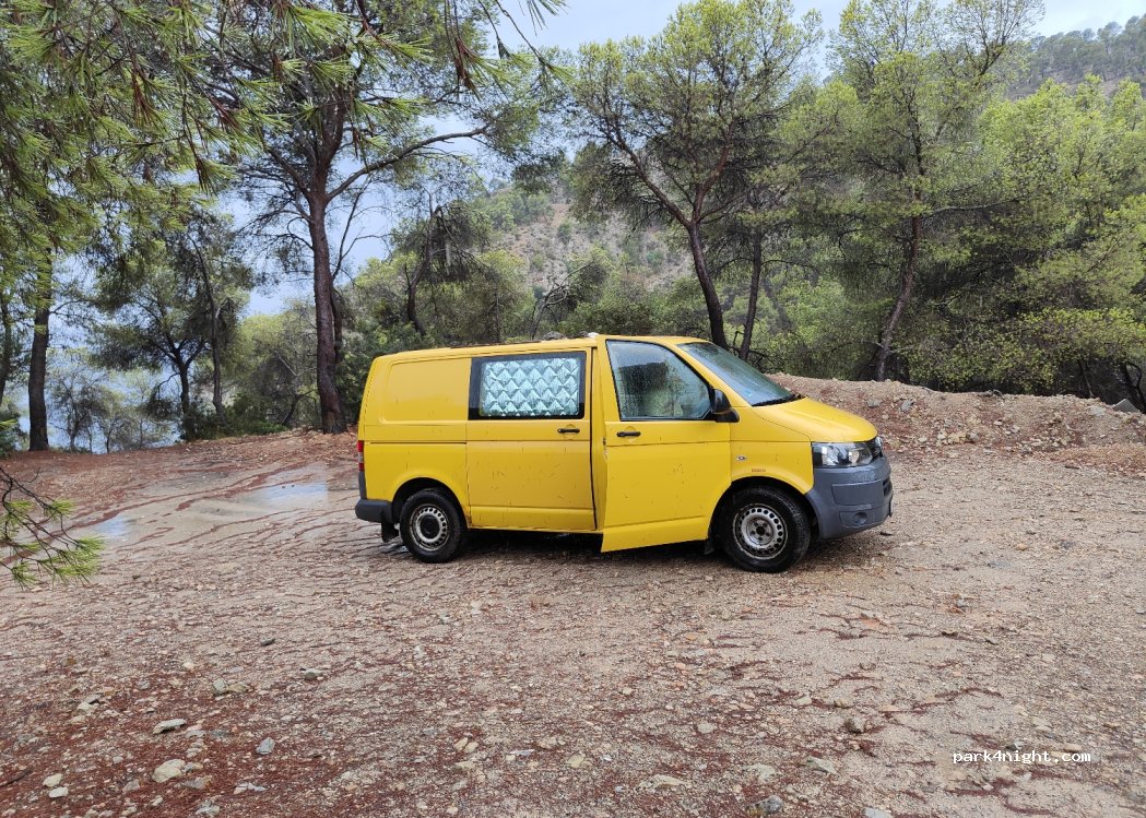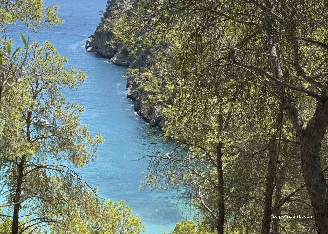Coin nature avec vue sur mer, en surplomb de la Cala Blanca (et d'un espace parking naturel où l'on peut aussi passer la nuit plus bas en continuant la route). Facile d'accès. De la place pour plusieurs fourgons ou camping cars, plutôt propre. Belle vue sur la mer au réveil