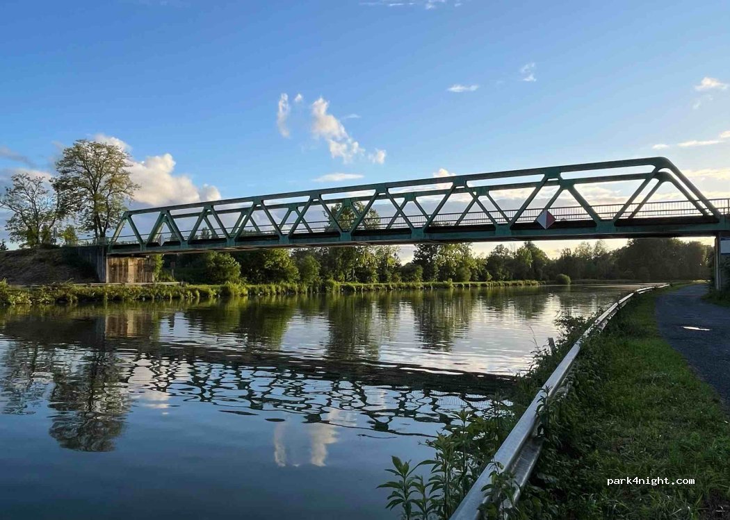 spot sympa mais pas dingue. nous nous sommes placés le long de la digue. il y avait une ou deux places. il y en avait plus avant d'arriver sur la route longeant le canal. pas trop de passage, à part les bateaux et quelques piétons. spot pratique pour un stop. nuit paisible. nous préférons des spots plus isolés et nature mais c'était ok.