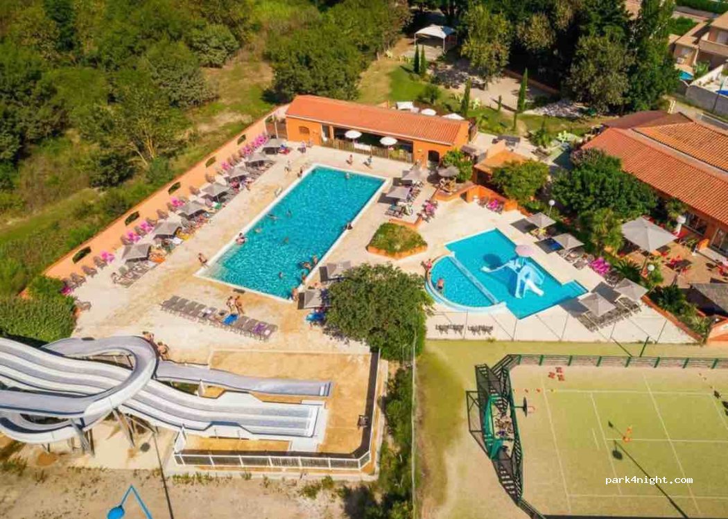 Campsite Ma Prairie; family with mobile homes and well-defined pitches; pretty swimming pool with slides and restaurant a little apart to limit noise; very nice staff.