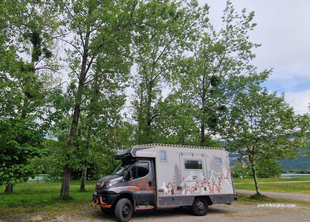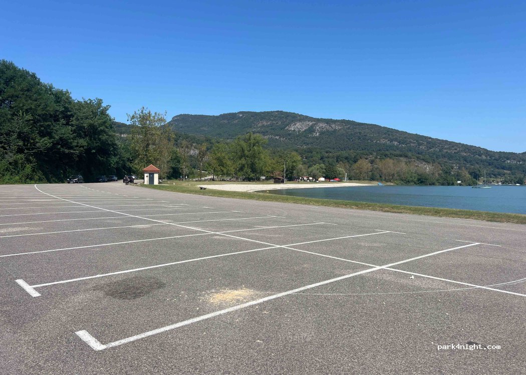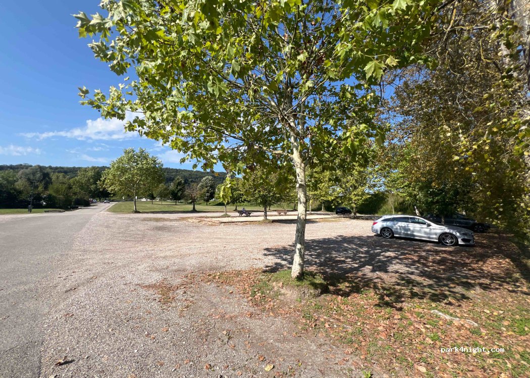Parking spacieux et calme la nuit. Attention cependant au nouvel affichage à l'entrée qui signale désormais une interdiction de stationnement aux camping cars. Il a été placé pour limiter le manque de place pour la base de loisirs en saison haute. Stationné pour la nuit un 23 mai on m'a gentiment demandé de ne pas rester le lendemain. Dommage, le camping juste en face n'accepte pas les poids lourds.