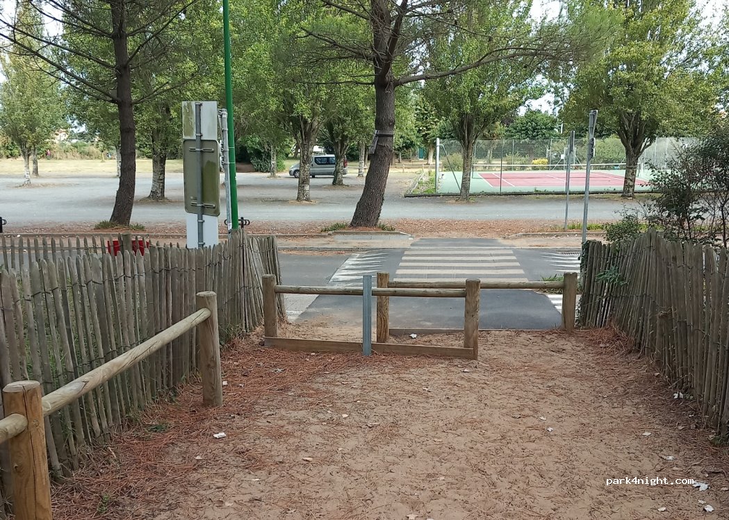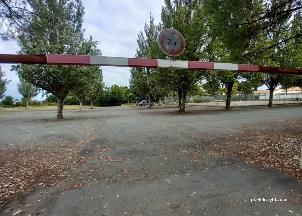 Grand parking avec barre à 2m, juste à côté de l'air de camping car.