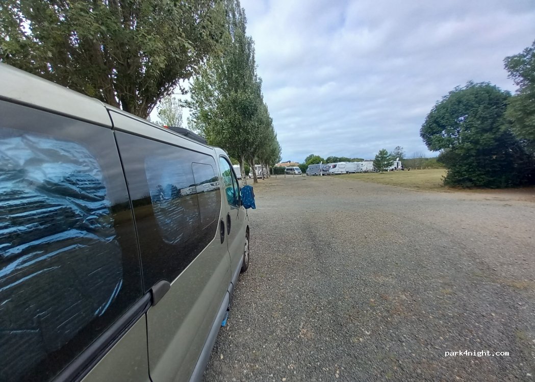 super lieu, ombragé, barre à 2 m, taille des places très grande. toilettes, plage à 50 m avec accès juste devant le Parking. en été quelque passage de jeune bruyant la nuit mais avec les bouchons d’oreilles tout va bien.