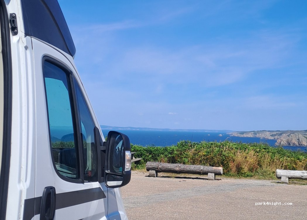 C'est un parking ou les camping-cars ne sont pas interdits. Le point de vue est extraordinaire, joli petit port en contrebas et départ de chemin de randonnées longeant les baies. pour ceux qui aime la tranquillité loin des pièges à touristes comme la pointe du Raz.