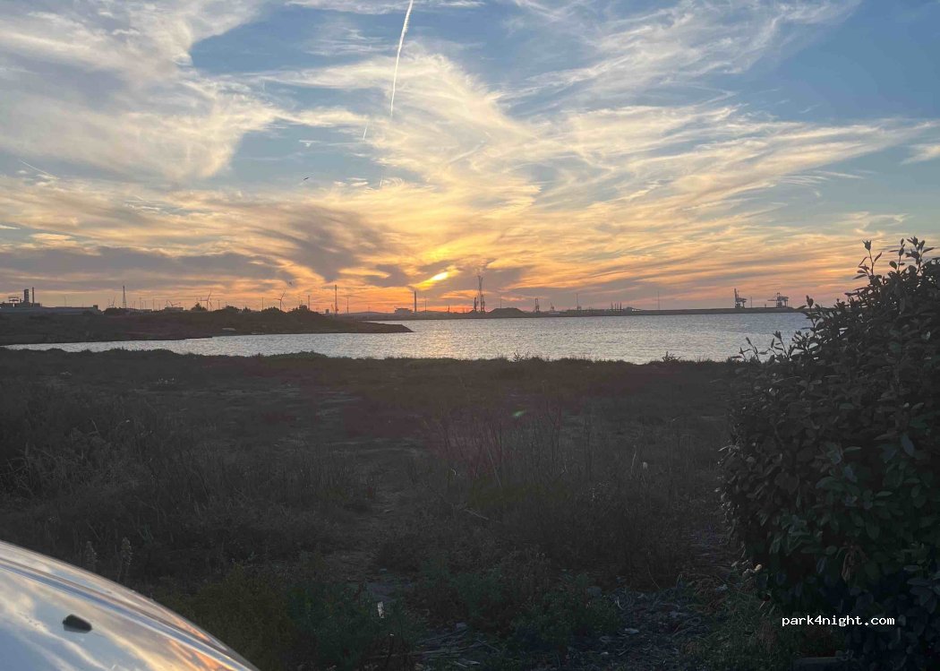 Noche tranquila antes de coger el ferry, solo a 3 minutos en coche. Hay bastante gente en coches y caravanas haciendo noche. También parece que hay gente viviendo allí en caravana .