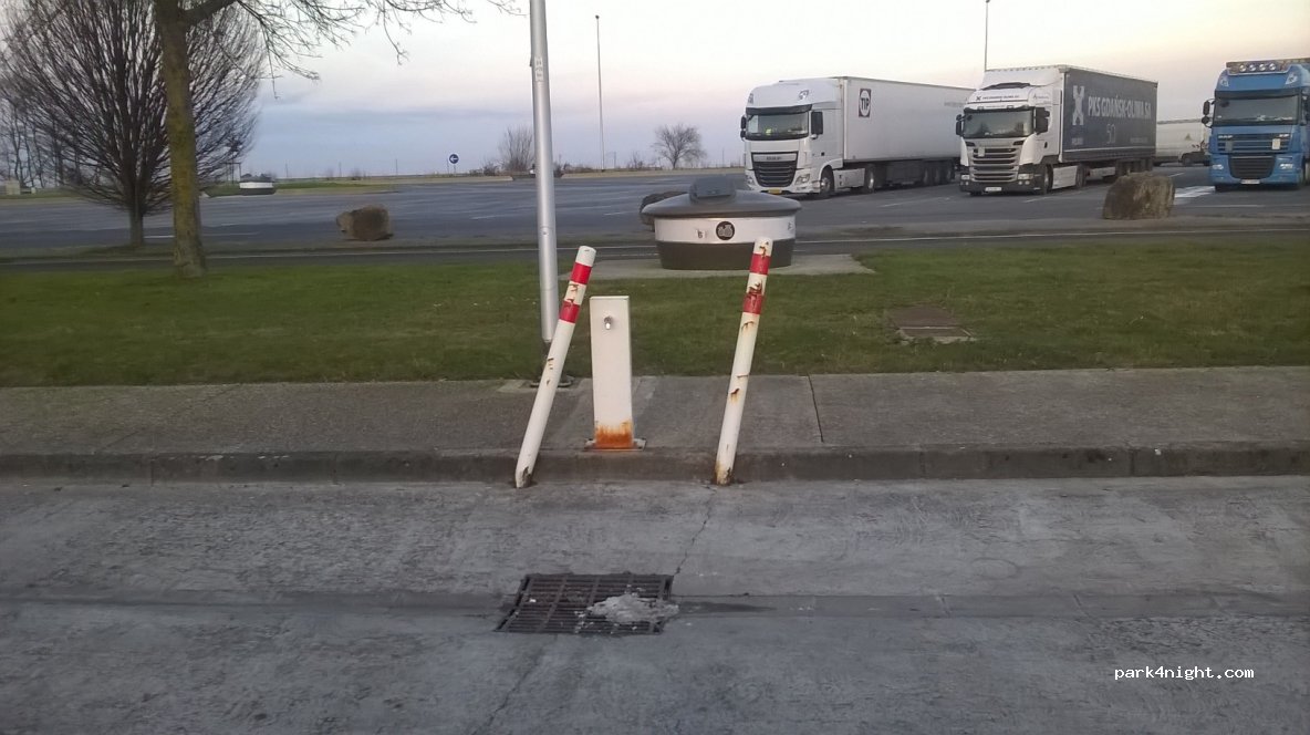 Rustplaats op de snelweg A26, richting Calais. Alleen grijs water legen en schoon water bijvullen door drukknop.