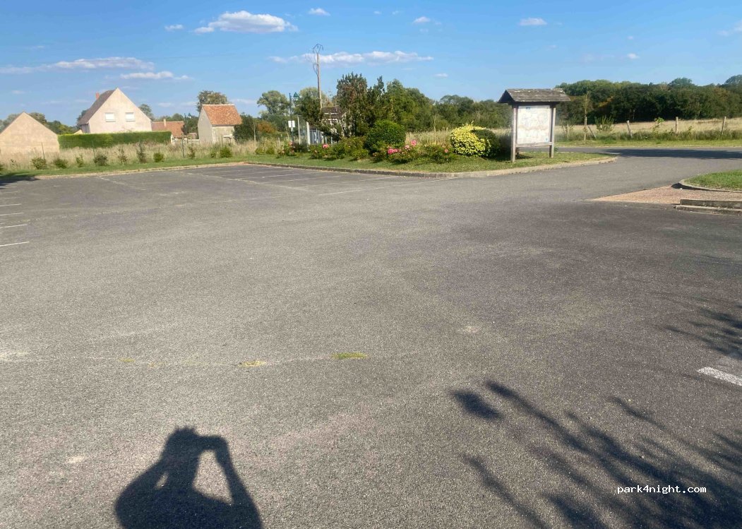 2 petits parkings juste à côté de la mairie pas d’interdiction. Le bruit des voitures est assez présent mais pour une nuit pas de soucis poubelles présentes ainsi que benne à verre