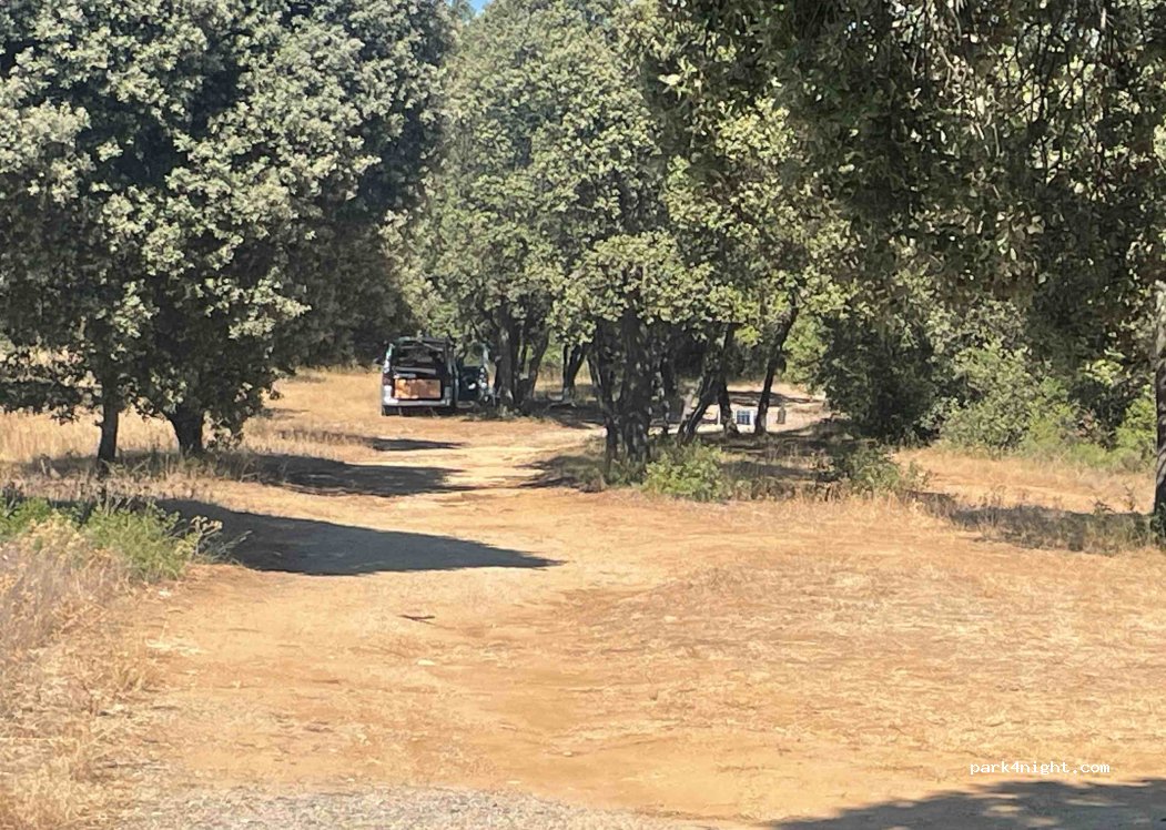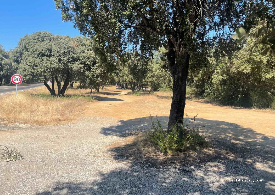 Large shaded car park, close to the road, but not very noisy, plenty of space in the shade, 1 km from the village with all shops, impeccable for spending the night
