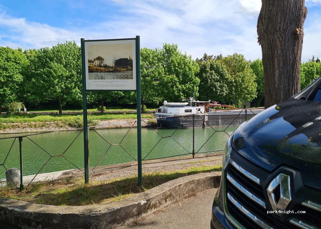 Small part of the island of Bougival with a beautiful view of the lock where various barges, whether commercial or not, pass through. Rather well frequented place. The main road passes on the other side of the arm of the Seine but it remains quite calm overall despite the traffic during working hours.