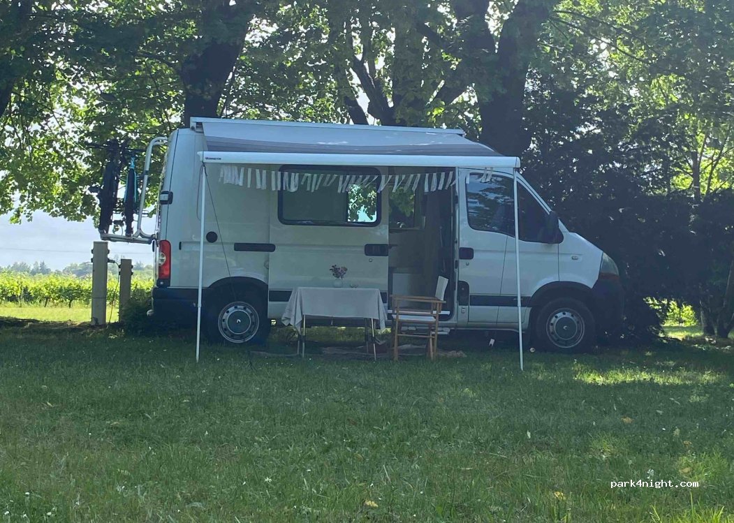 Nous y sommes allés sur recommandation de ma cousine qui habite à côté, super accueil, visite de la cave, beau terrain, électricité, sanitaires pas jeunes mais fonctionnels, parfait ça change des aires de camping car et des campings. Visite en septembre 2023.