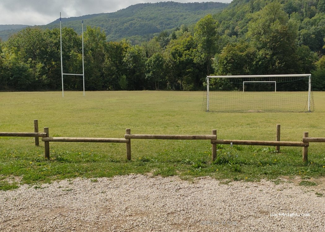Lieu pour se poser un jour ou plusieurs, parfait, joli, calme si pas de match, possibilité de se promener dans le parc et le long de la rivière. petite ville à proximité très sympa et très accueillante avec un café associatif qui se nomme le lieu dit situé rue de l'industrie et que je conseille. bon séjour !