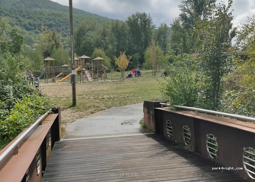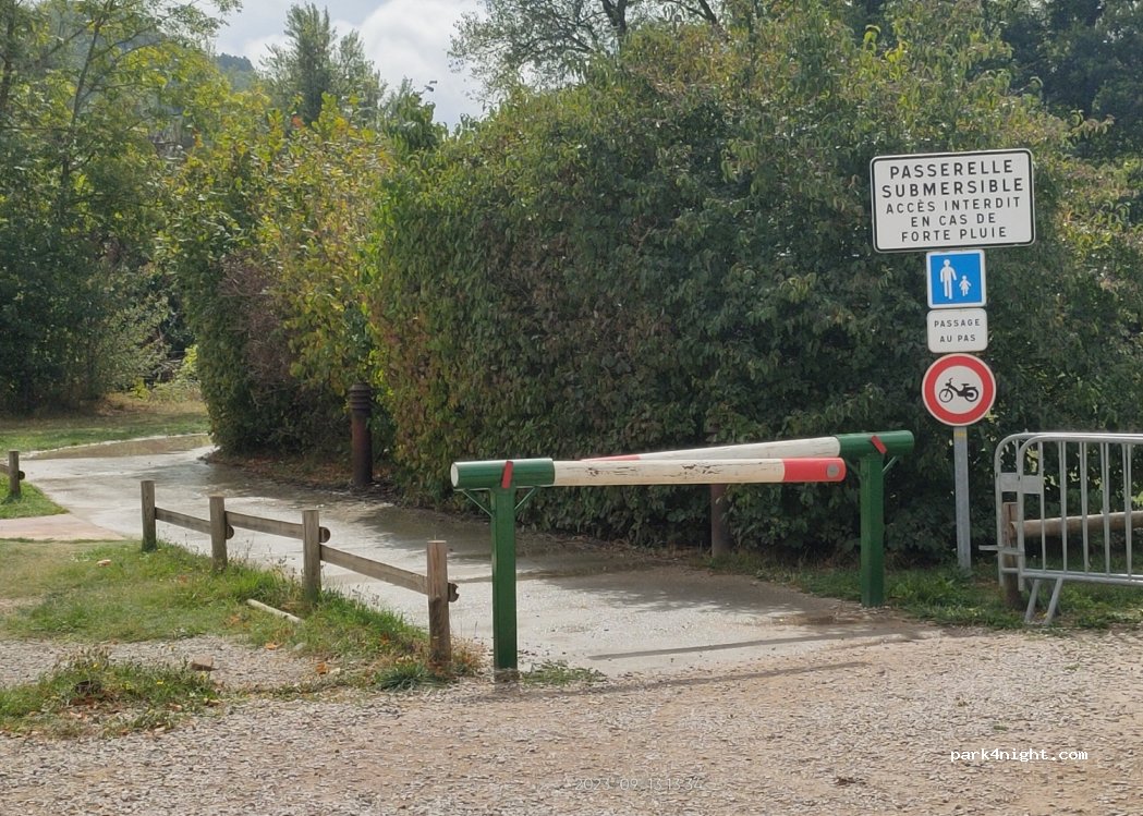très bon endroit pour se poser prêt du centre ville et passer une nuit au calme. En effet, des blocs rocheux limitent l'accès aux plus grands CC, mais nous avons pu passer avec le nôtre de 6m de long. L'emplacement est à proximité immédiate des voies cyclables et autres promenades.