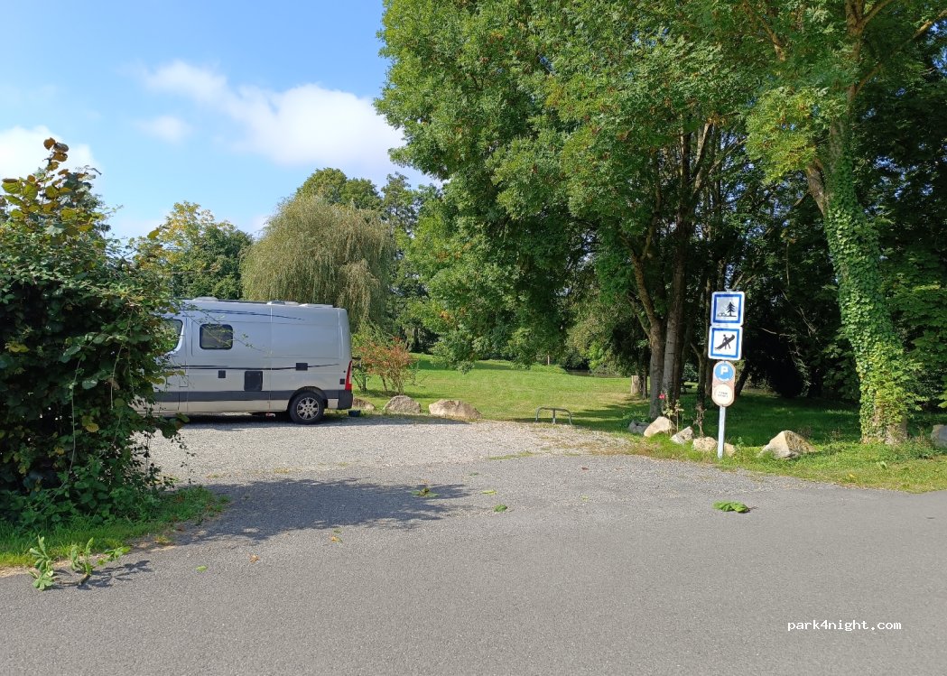 Lovely quiet place. Space for two motorhomes. 2/3 hours from Caen. No bells at night . Good place to canoe from .