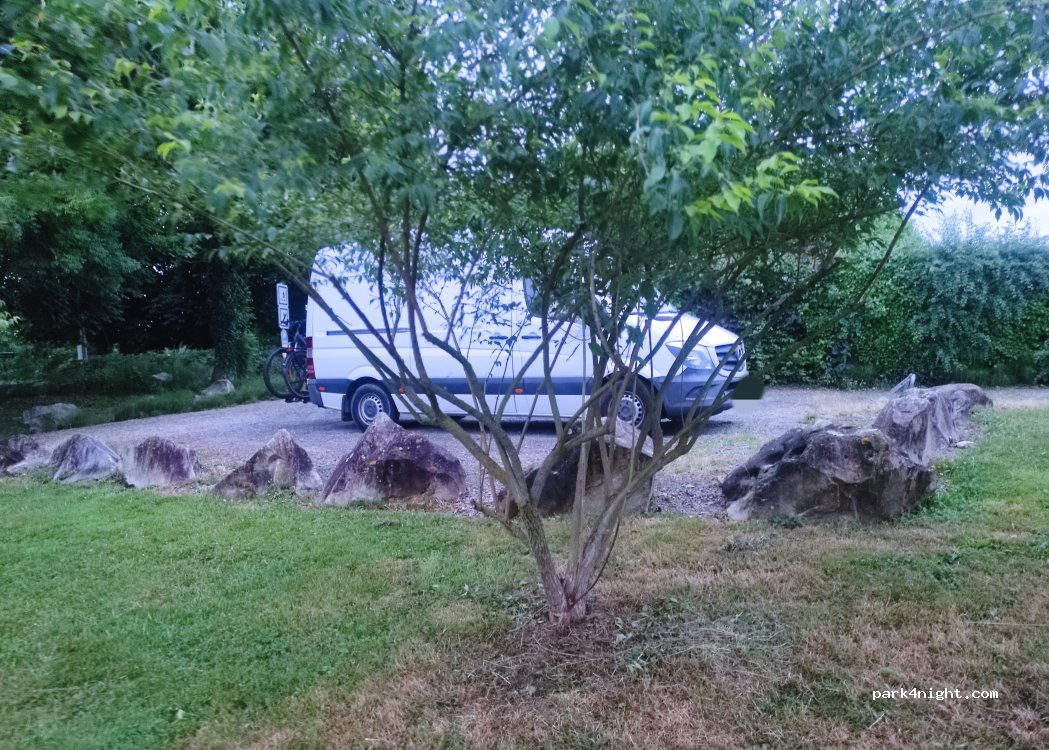 Quiet place suitable even for one night stand. Two sets of picnic tables included. Place is in beautiful garden. It can accomodate two vans.
